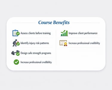 Professional certification designed to help trainers and physiotherapists assess movement, prevent injuries and improve athletic performance.